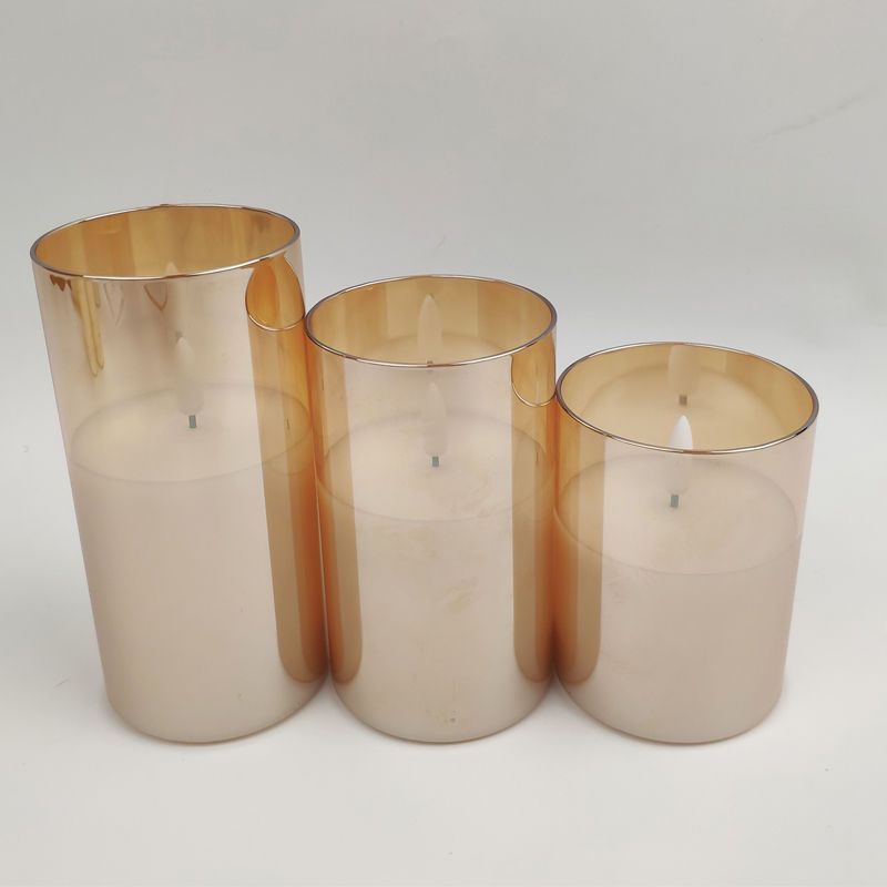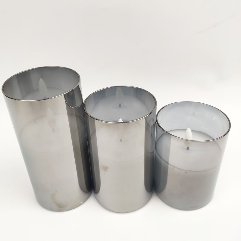 7.5 Round glass Bullet Led Candle three-piece Set YSC20020ABC